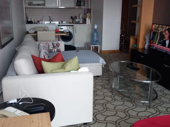 ” Das Apartment befindet sich in der 7 Etage mit wundervollen Blick zum Stadtkern und zum Meer.”